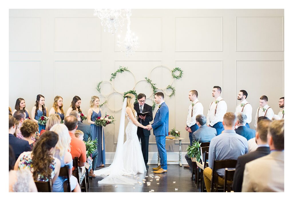 Grace and Corey got married on a beautiful winter day at The Bradford in Raleigh, North Carolina. As recent transplants from New York, they weren’t worried about the cold or the possibility of snow on their wedding day. In fact, it was lovely, warmer than usual. But the clouds rolled in that morning. It only rained for a short time, but it was enough to force their outdoor ceremony indoors.